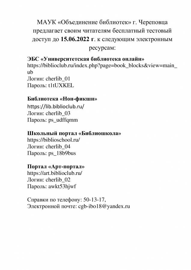 МАУК «Объединение библиотек» предлагает доступ к ресурсам